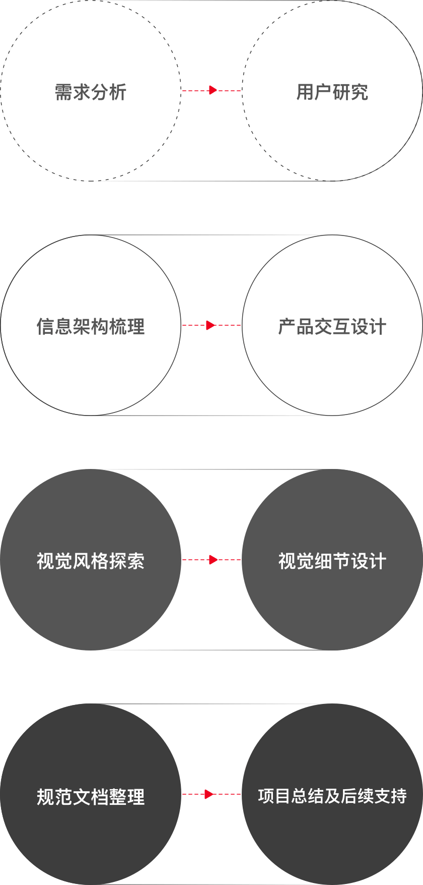 我们专注用设计为产品助力,提供交互设计,视觉设计及品牌设计三个维度的服务