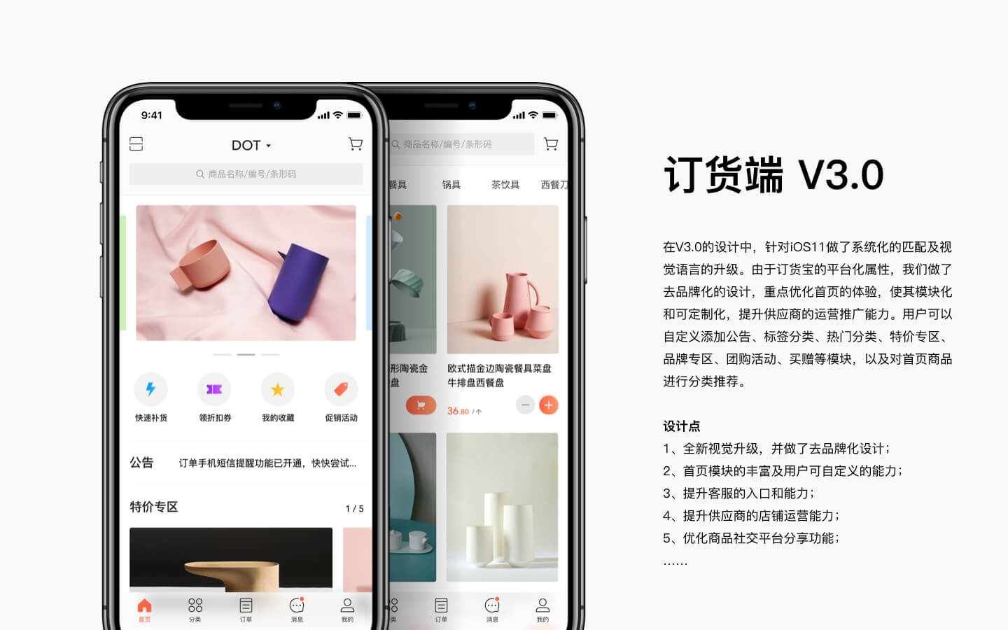 订货宝是针对上游供货商和下游订货方打造的高效订货、发货、对账、支付等业务的SaaS云服务平台。 我们对订货宝移动端的框架,交互流程,视觉风格及品牌进行了全面重构,得到客户及用户的一致好评,助力企业在2017年底,获得1.5亿 B 轮融资。